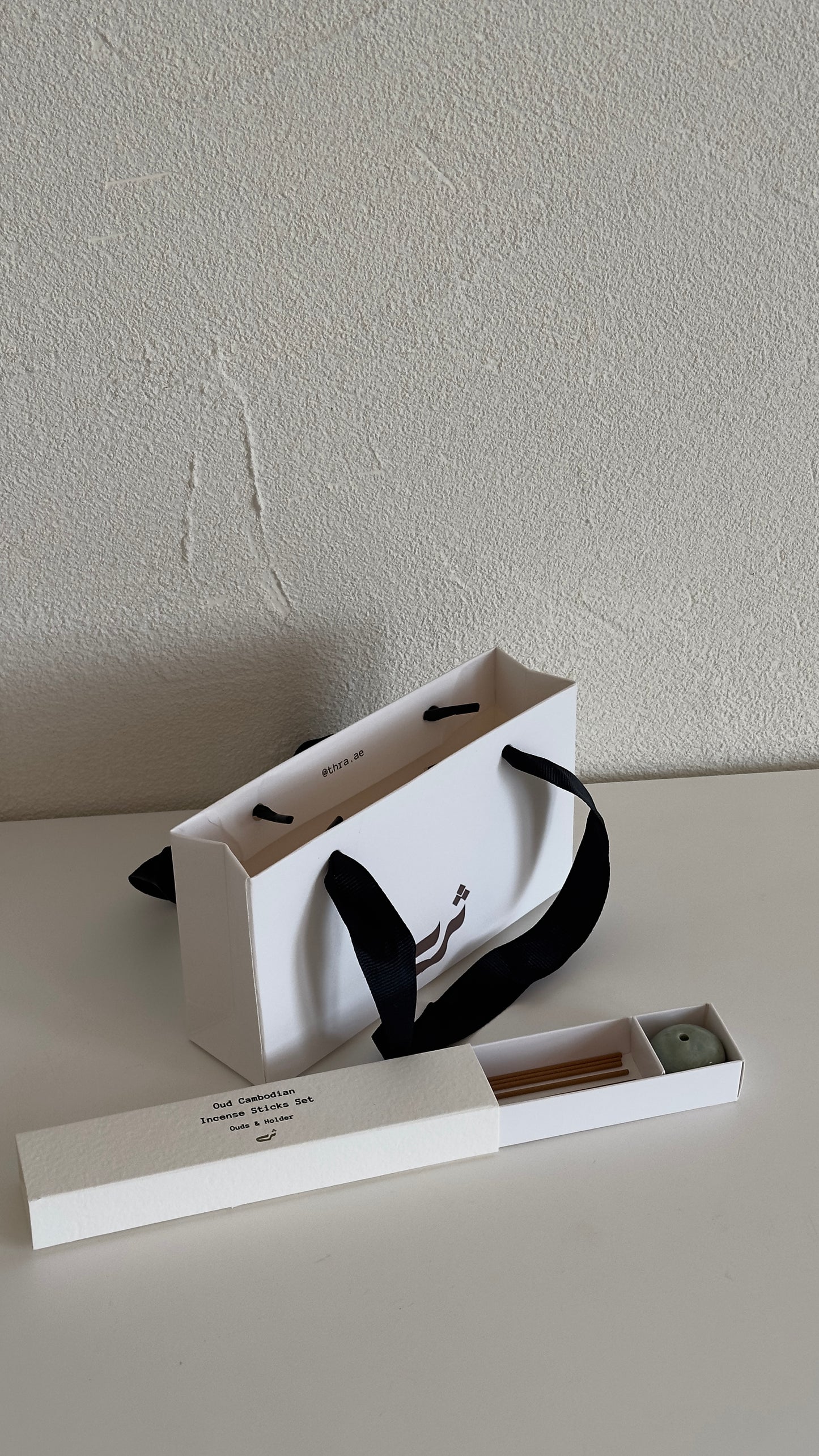 أضف لمسة من الفخامة والأصالة إلى مناسباتك الخاصة مع هذه التوزيعات المميزة. تتكوّن كل قطعة من 10 أعواد من العود الكمبودي الطبيعي برائحة دافئة وفاخرة، مع حامل العود باللون الاخضر الفاتح مصنوع يدويًا من الطين، بحجم صغير عملي و ممكن إضافة الشعار الخاص فيكم
