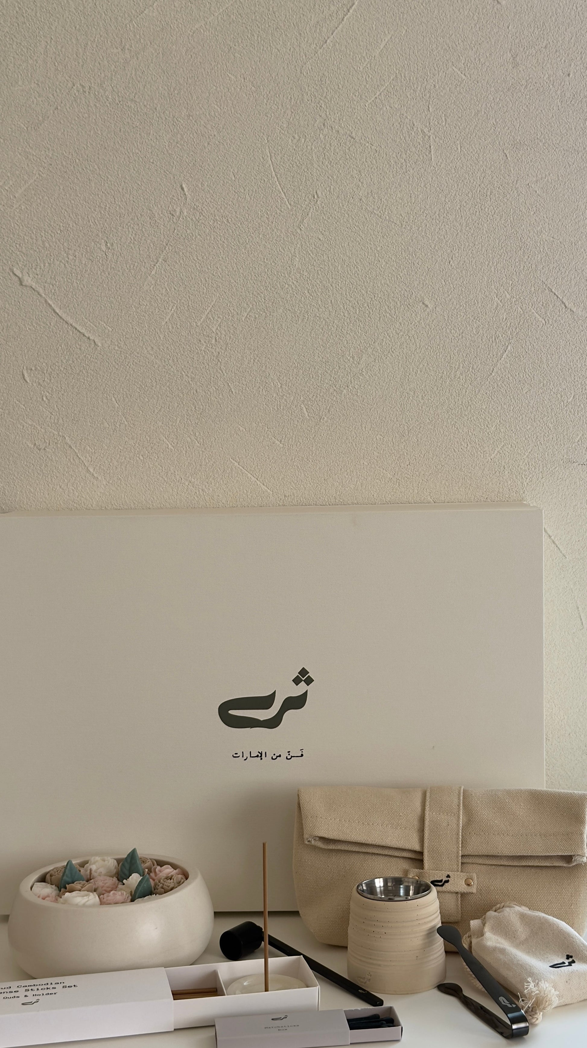 صُنعت مجموعة ثرى الفاخرة بعناية فائقة وشغف، لتعكس جوهر ثرى في الاحتفاء بالتفاصيل وجمال الحِرف اليدوية. تضم هذه المجموعة قطعًا مختارة بعناية، اجتمعت لتقدّم تجربة متكاملة تنبض بالفخامة الهادئة والبساطة الراقية